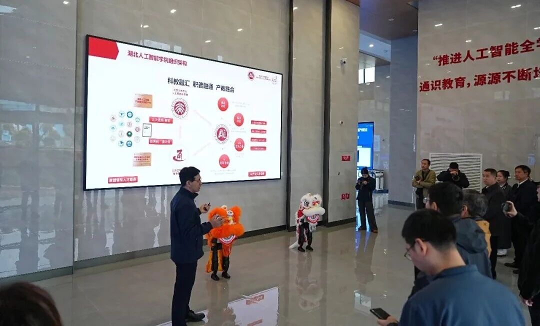 移步湖北人工智能学院,创新活力扑面而来。现场VR展示精彩纷呈,机器人舞狮灵动威武,尽显鄂州科技与民俗的巧妙融合。“高校+企业+研究院”的协同育人模式,让AI人才培养与产业需求无缝衔接。