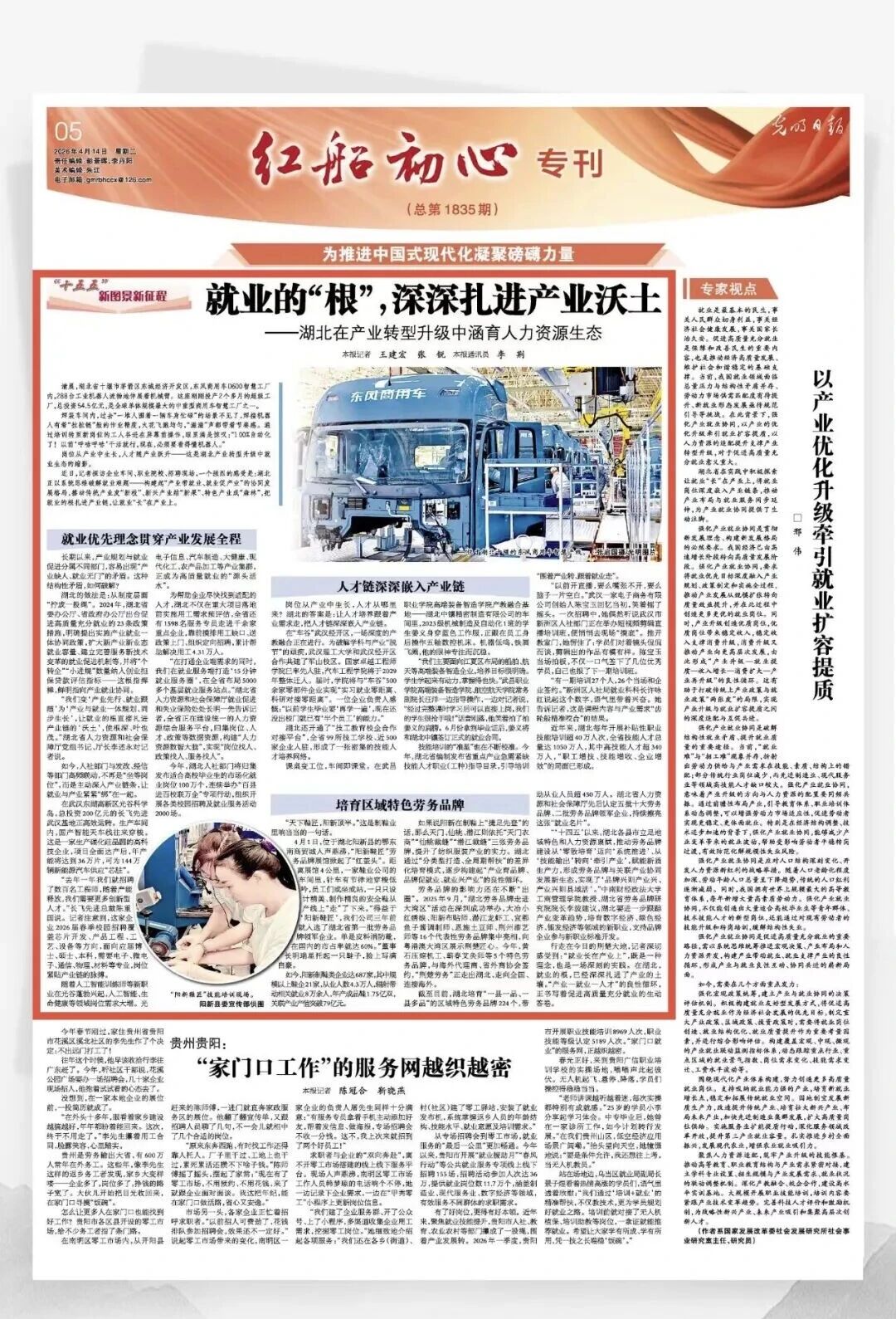 岗位从产业中生长,人才随产业跃升——这是湖北产业转型升级中就业生态的缩影。